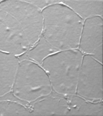 The Fat Cells from a microscope slide listed below are shown with and without labels. The original image from which the stereolithographic (stl) file was made is also shown to give a better sense of the level of accuracy for the 3D prints which can now be use for a tactile learning experience. Digital photos of the 3D prints were made with light shining on them at an angle to show the lower regions as dark as when sunlight shines on mountains at sunset and the valleys are dark in shadow and the higher regions are still lit as this better shows the 3D nature of a print.