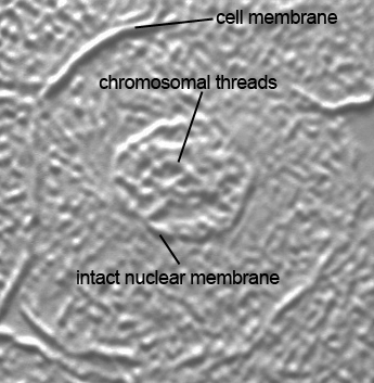 The cell in prophase listed below is shown with and without labels. The original image from which the stereolithographic (stl) file was made is also shown to give a better sense of the level of accuracy for the 3D prints which can now be use for a tactile learning experience. Digital photos of the 3D prints were made with light shining on them at an angle to show the lower regions as dark as when sunlight shines on mountains at sunset and the valleys are dark in shadow and the higher regions are still lit as this better shows the 3D nature of a print.