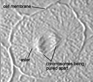 The cell in anaphase is shown below with and without labels. The original image from which the stereolithographic (stl) file was made is also shown to give a better sense of the level of accuracy for the 3D prints which can now be use for a tactile learning experience. Digital photos of the 3D prints were made with light shining on them at an angle to show the lower regions as dark as when sunlight shines on mountains at sunset and the valleys are dark in shadow and the higher regions are still lit as this better shows the 3D nature of a print.